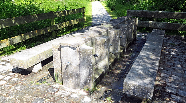Jetzt führt der Weg umgehend zur Erlösung der Füße zur sog. Fußwasch Anlage. Von dort besteht jetzt wieder eine direkte Verbindung zum Nationalpark Haus mit WC auf der Rückseite des Gebäudes.